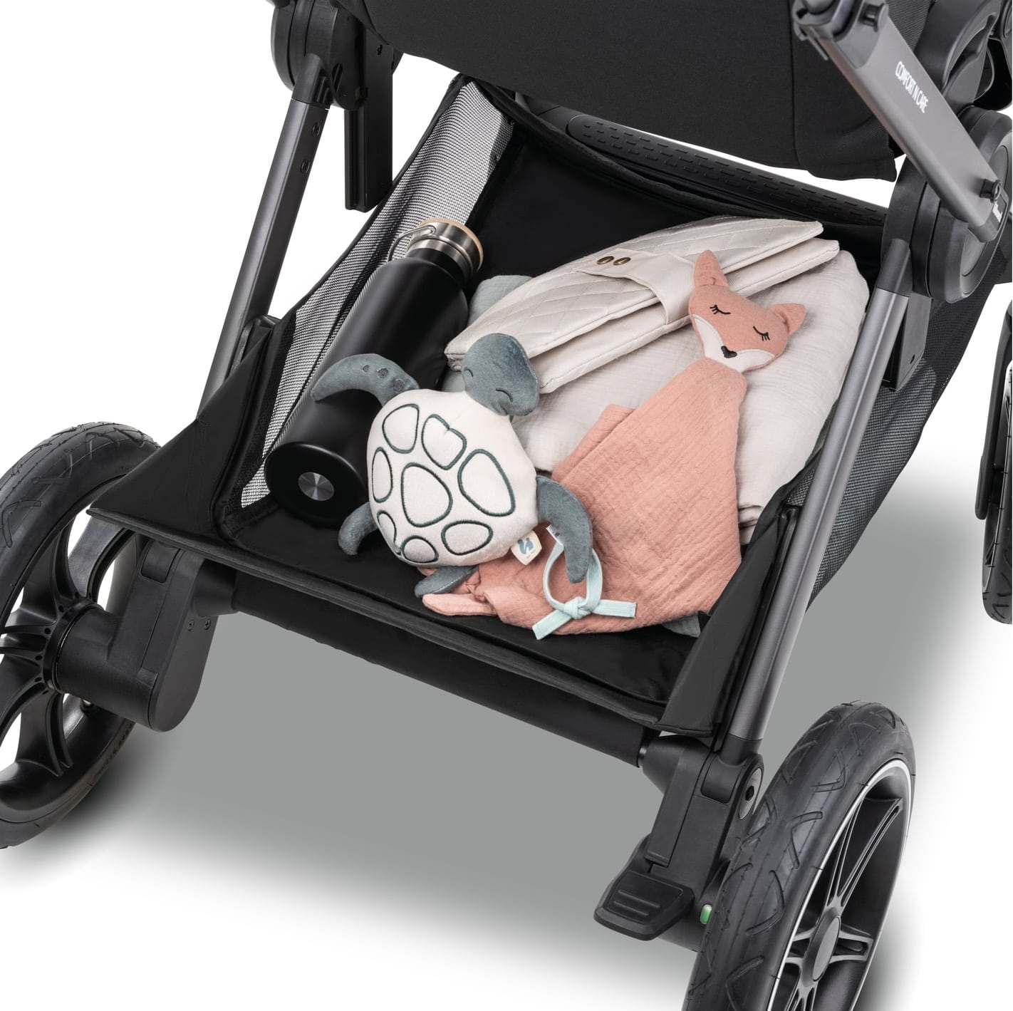 The spacious and extendable storage basket offers room for your changing bag, shopping, and other essentials for your trips. You’ll always be well equipped.